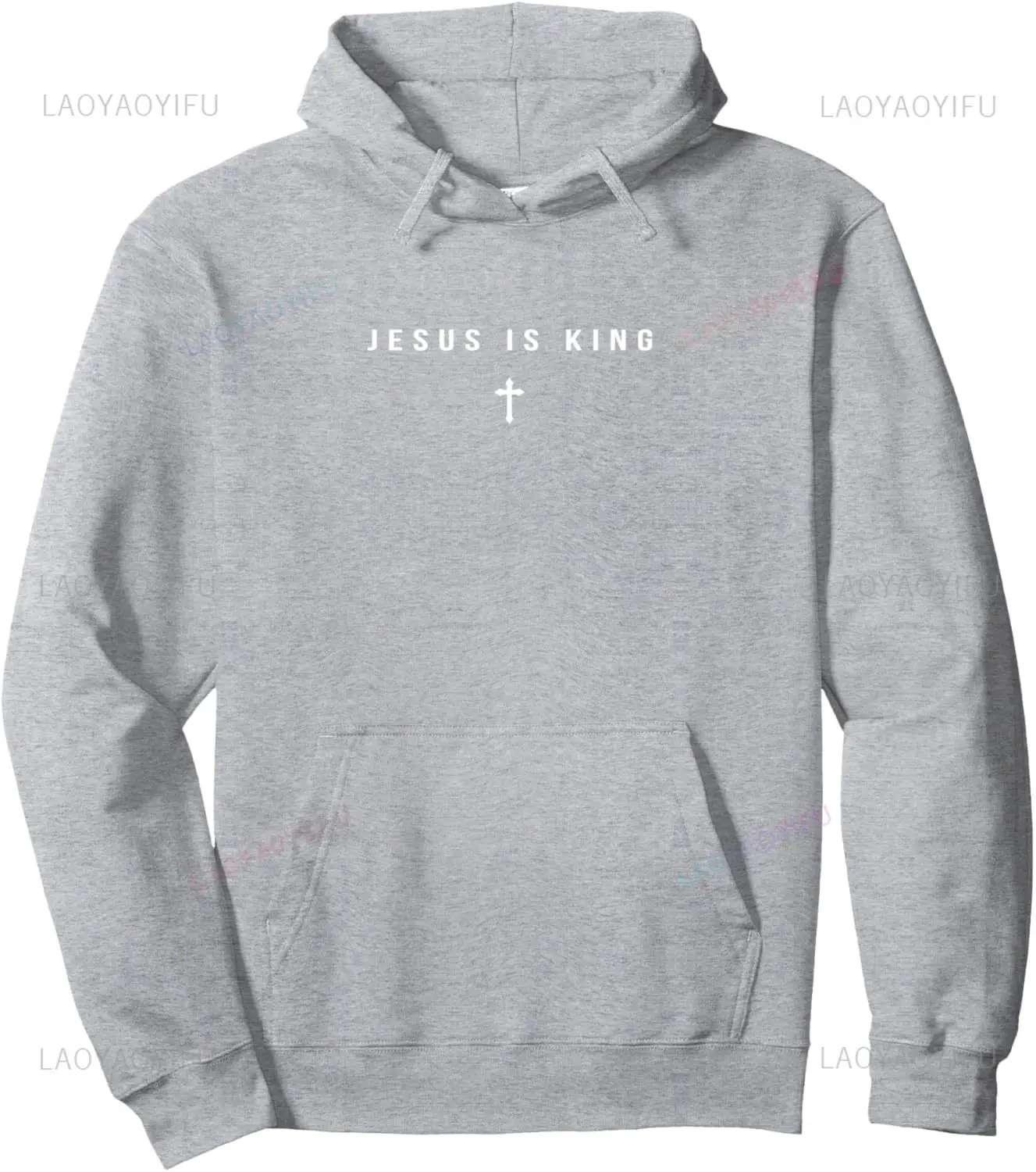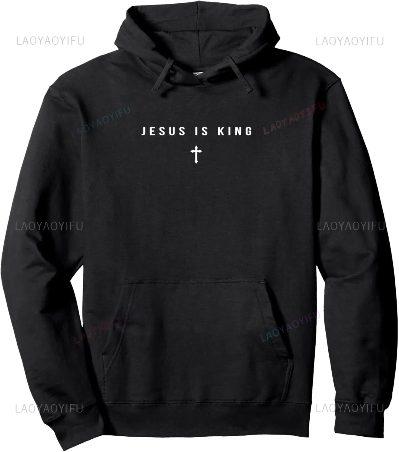 Jesus Is King Cross Christian Minimalist Religious Christ Pullover Hoodie Print on Demand Hoodies Streetwear Individuality